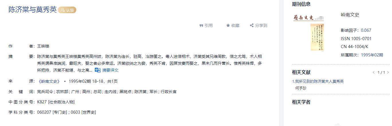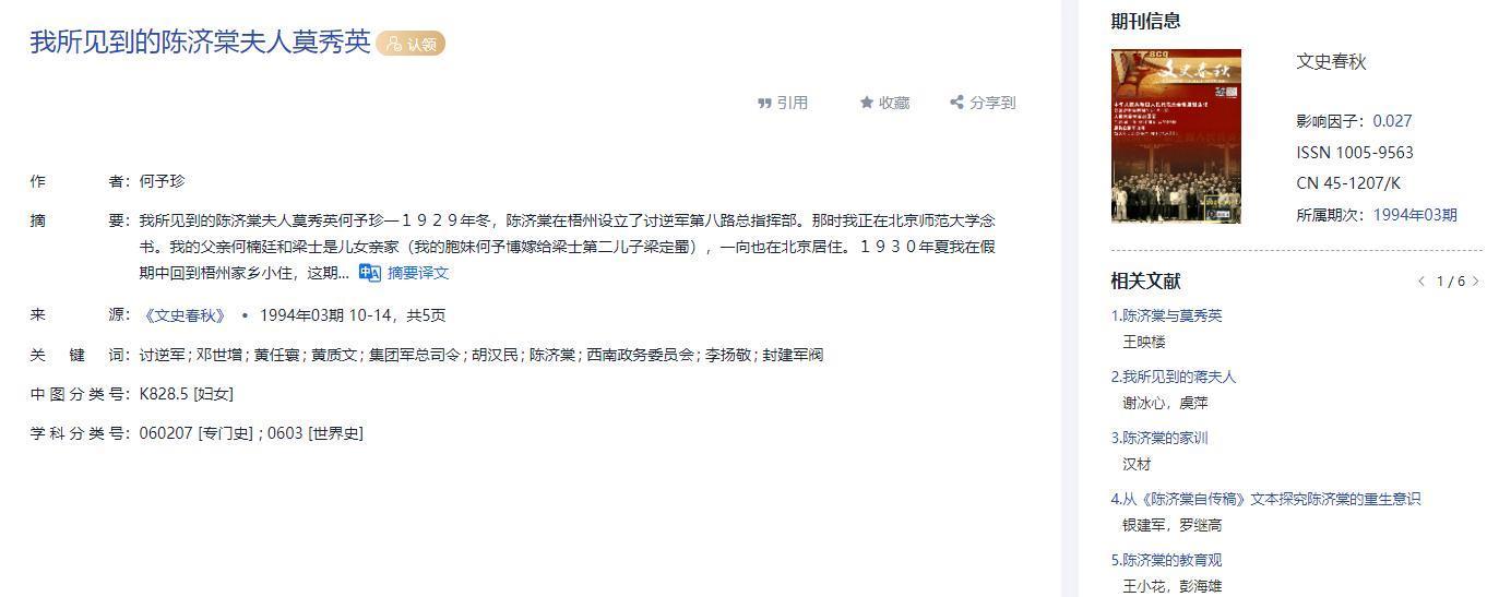 [2]何予珍.我所见到的陈济棠夫人莫秀英[J].文史春秋,1994,(03):10-14.